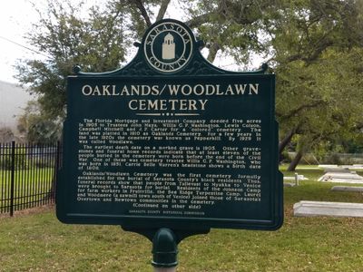 According to the plaque dedicated in 2004 by the Sarasota Historical Commission the cemetery containing five acres was deeded in 1905 to Trustees John Mays, Willis G.P. Washington, Lewis Colson, Campbell Mitchell and J. P. Carter, African Americans who left their own legacies to the community. The first burial was said to have been April 10, 1905. That means it was likely Johnnie Miller, a child